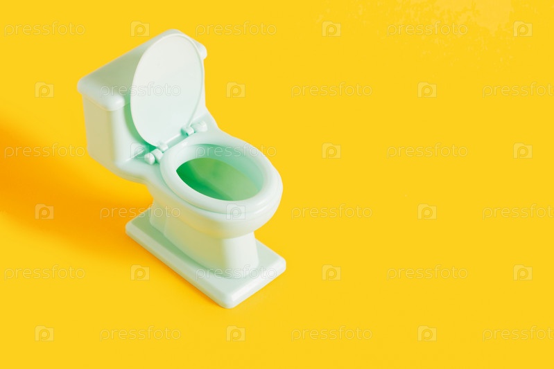 Зеленый игрушечный унитаз на желтом фоне