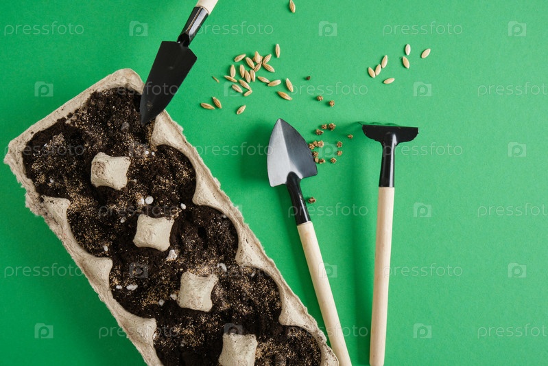 Садовые инструменты на зеленом фоне. Концепция гаредайнинга