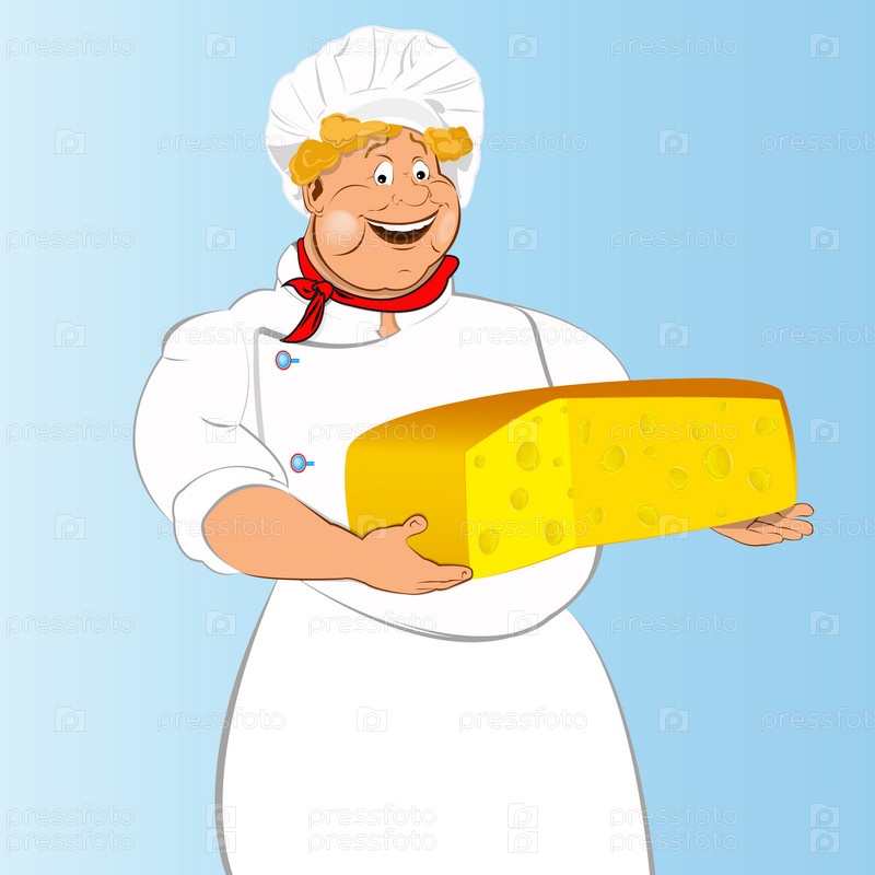 Мужчина шеф-повар и свежий молочный швейцарский сыр на голубом фоне