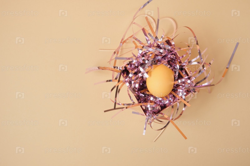 Простой и минимальный пасхальный фон - пасхальные яйца в подарочной коробке на бежевом фоне