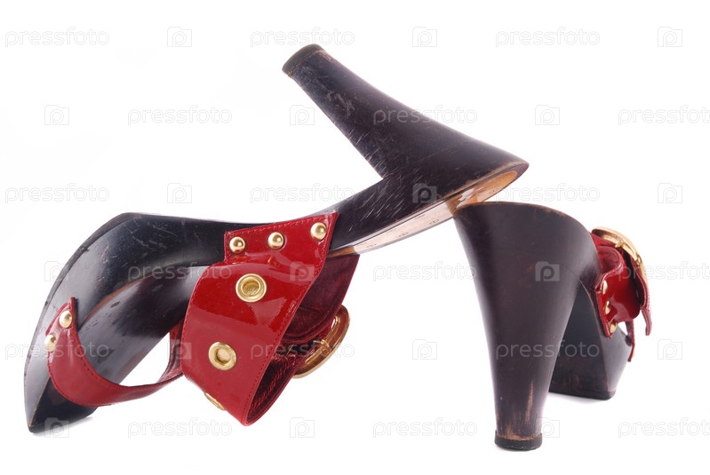 Красные женские туфли с пряжкой на белом фоне