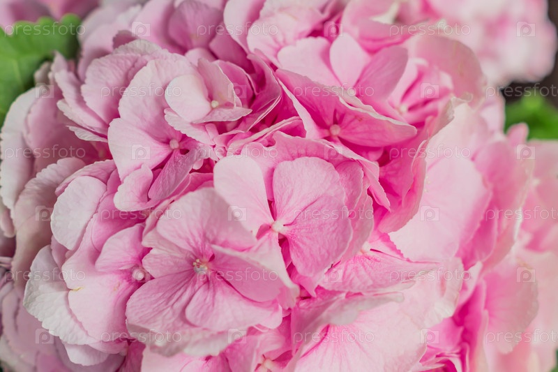 Красивые цветущие розовые цветы гортензии фон
