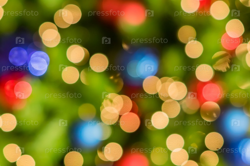 Абстрактные размытые огни на фоне синего, фиолетового, оранжевого цветов. - концепция празднования Рождества