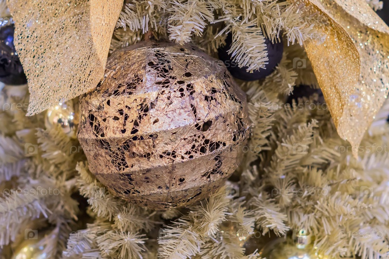 Рождественские и новогодние праздники фон. Белая елка украшена фиолетовыми шарами. Концепция праздника