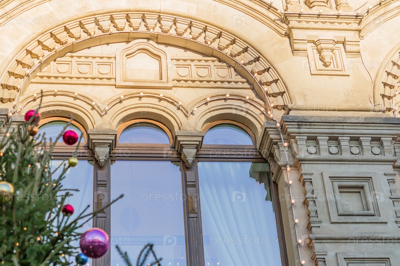 Москва, Россия - 10 января 2018 г.: Вид на праздничный торговый центр ГУМ в рождественские праздники. Елка украшена разноцветными шарами