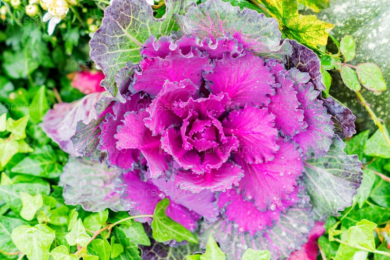 Вид сверху на декоративную фиолетовую капусту или капусту