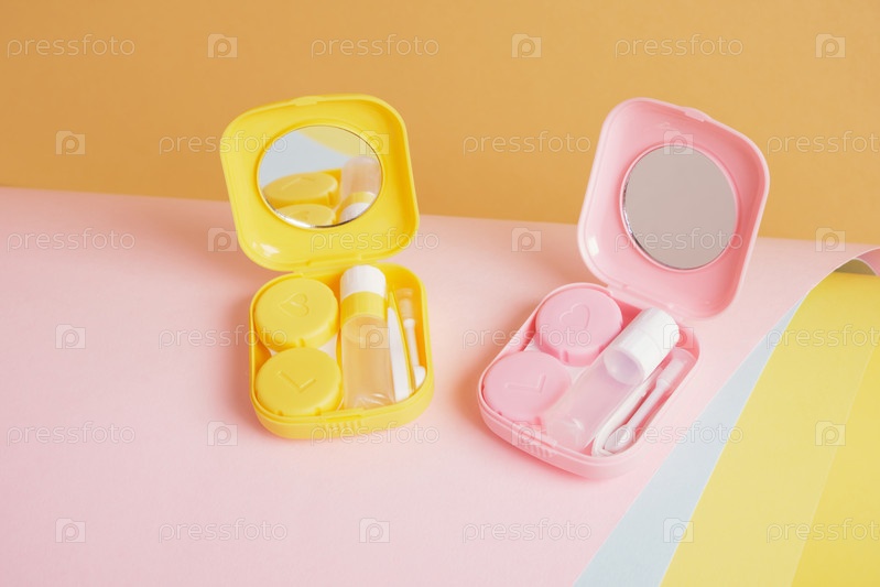 Коробка для контактных линз с зеркалом, чехол для линз на цветном фоне