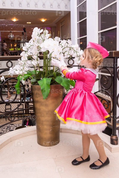 Радостная девочка в красивом модном платье