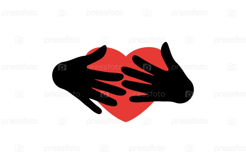 Руки держат красное сердце. Логотип жизни