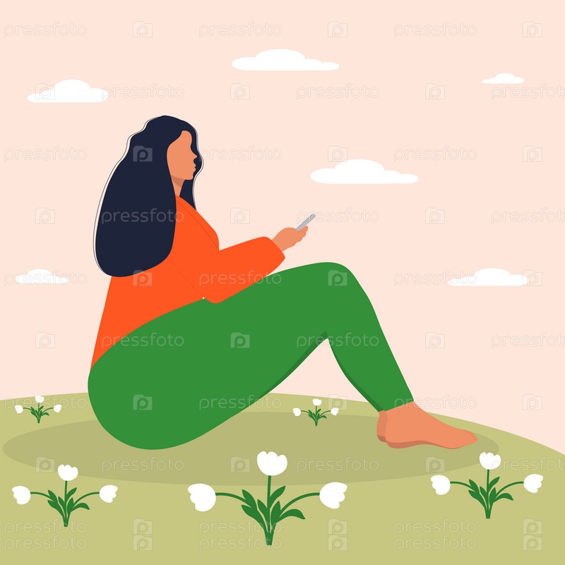 Молодая женщина сидит на цветочном лугу