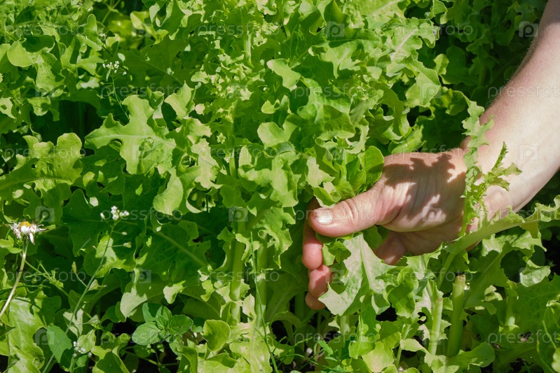 Руки собирают салат, сажают в огороде, крупным планом