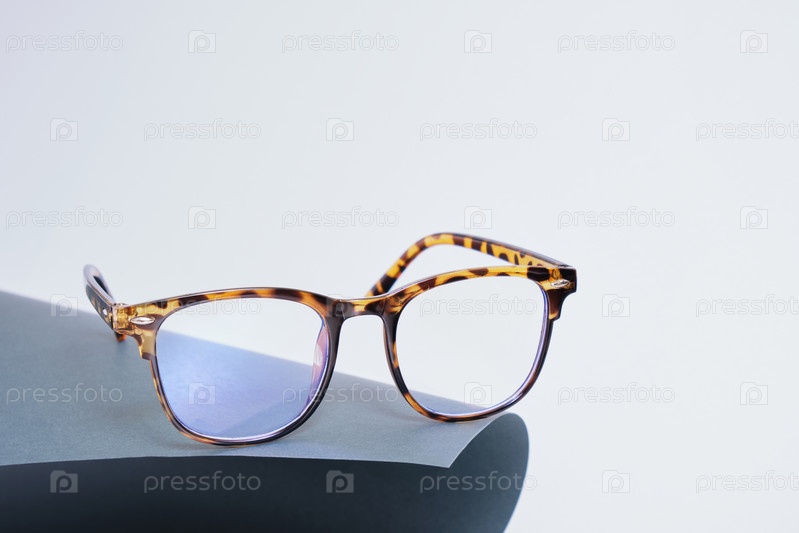 Очки на темно-серой обернутой бумаге, модные модные очки на сером фоне копируют концепцию космической оптики