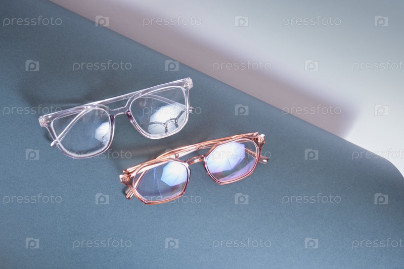 Несколько пар очков на темно-серой обернутой бумаге, модные модные очки на сером фоне