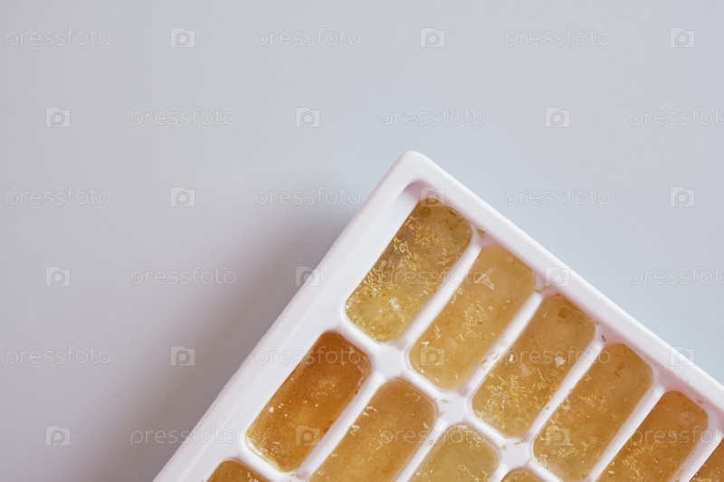 Ромашковый чай со льдом в форме для льда на сером фоне