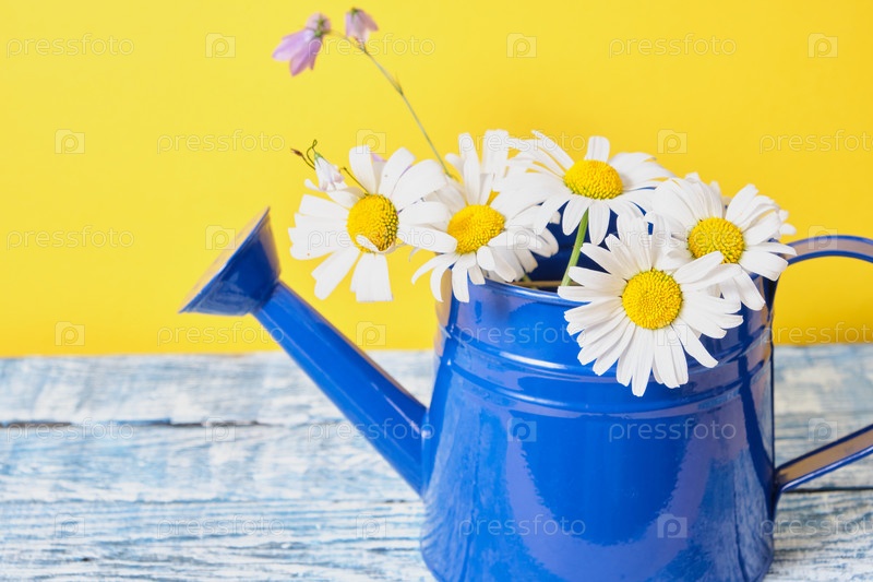 Лейка с ромашками. Лейка с цветами ромашки