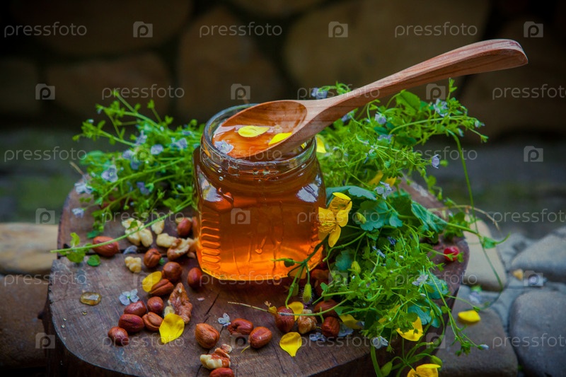 Натюрморт с медом с малиной и имбирем