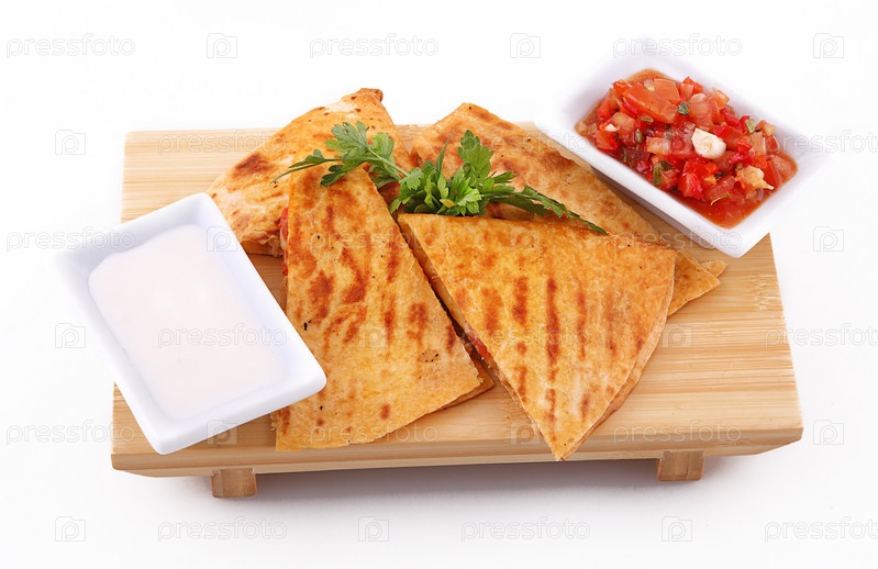 Кесадилья с бело-красным соусом