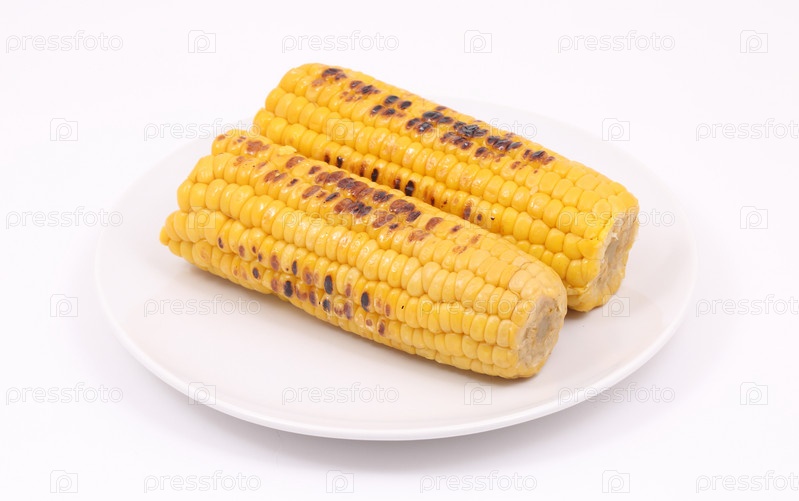 Жареная кукуруза на белом фоне