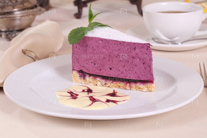 Ягодный торт с чаем с мятой и лимоном
