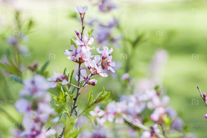 Вишня, сакура. Дерево в цвету. Сезон весеннего цветения. Природа и сады. Фон для цветочного дизайна. Место для копирования. Выборочный фокус