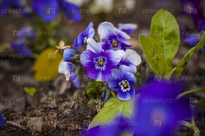 Детали красивых естественных цветов с размытым фоном. Яркие цветы анютиных глазок. Место для копирования
