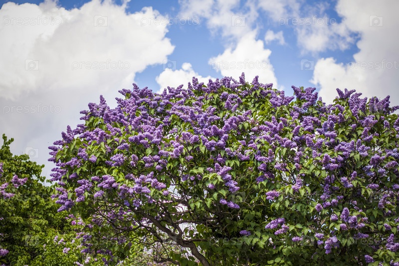 Красивая и ароматная сирень в саду. Крупный план с копией пространства на фоне природного ландшафта. Натуральные обои. Выборочный фокус