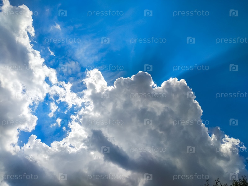 Солнечные лучи пробиваются сквозь темные тучи в небе. Красивый эффектный концептуальный фон медитации