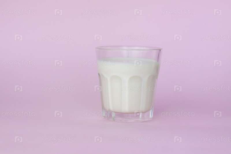 Стакан белого молока, выделенный на розовом фоне, крупным планом