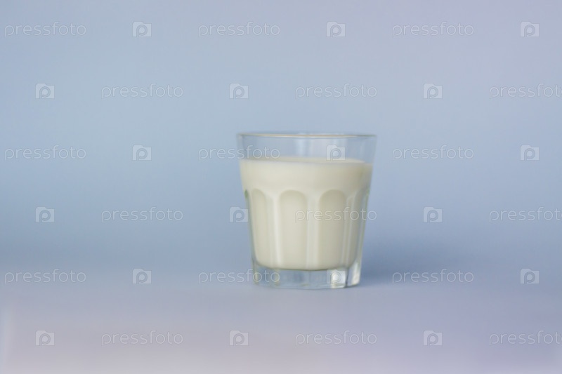 Стакан белого молока, выделенный на синем фоне, крупным планом