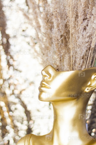 Женский пол-лица с фактурными ветвями. золотая фигура, внутреннее убранство