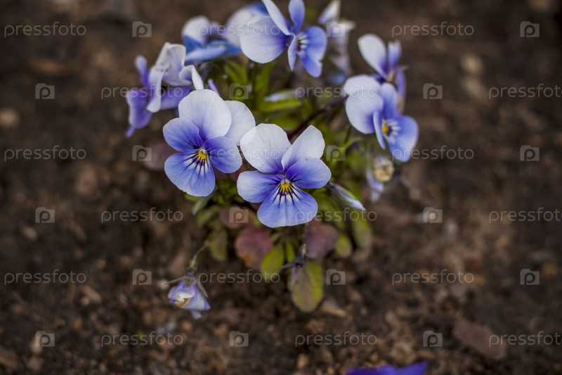 Детали красивых естественных цветов с размытым фоном. Яркие цветы анютиных глазок. Место для копирования