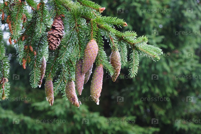 Шишки деревьев со смолой, натыкающейся между сосновыми иголками