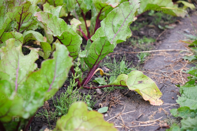 Свекла в саду, свежая свекла, растущая в земле, концепция садоводства, натуральные продукты из собственного сада