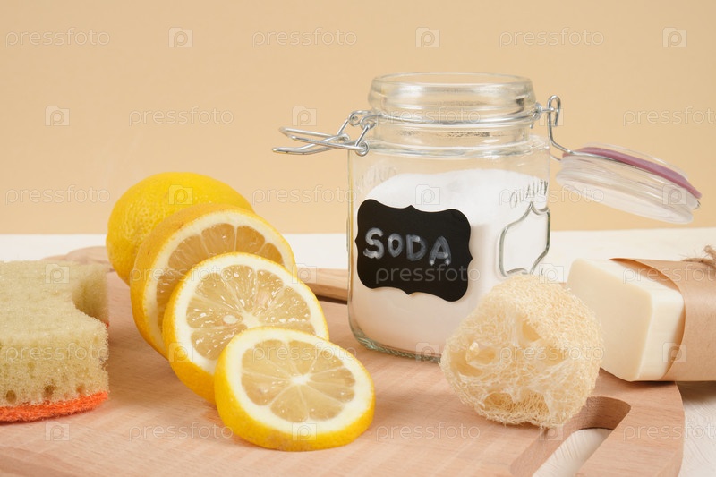Экологически чистый набор для уборки, сода и лимон для очистки, концепция образа жизни без отходов