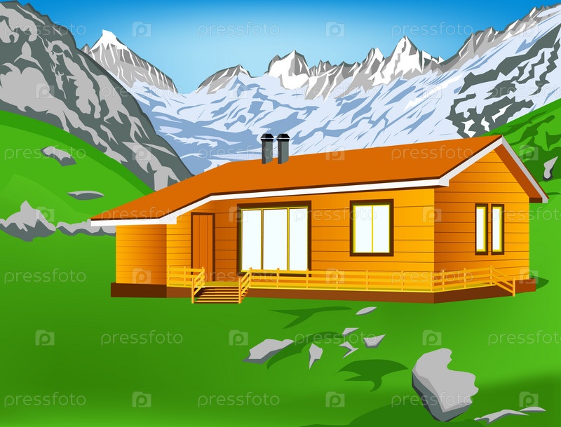 Сельский швейцарский домик на высокогорном зеленом лугу в Альпах