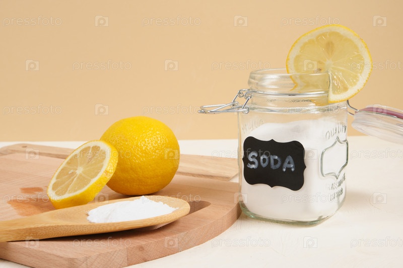 Экологически чистый набор для уборки, сода и лимон для очистки, концепция образа жизни без отходов