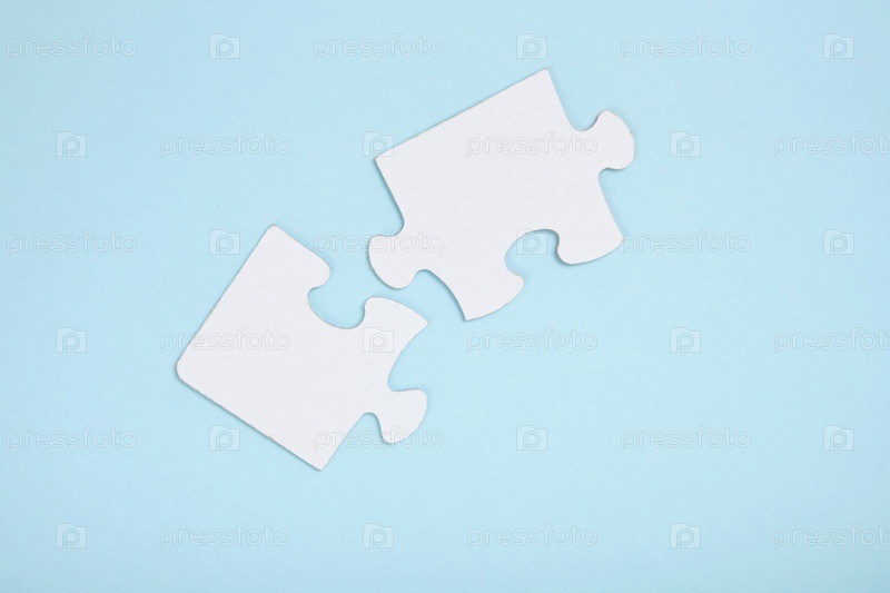 Белые кусочки головоломки на фоне синей бумаги