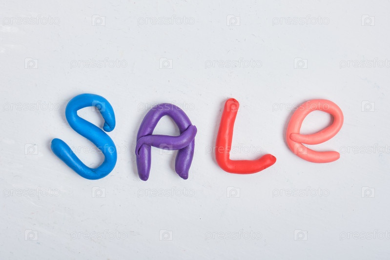 Надпись распродажа из пластилина на сером фоневид сверху