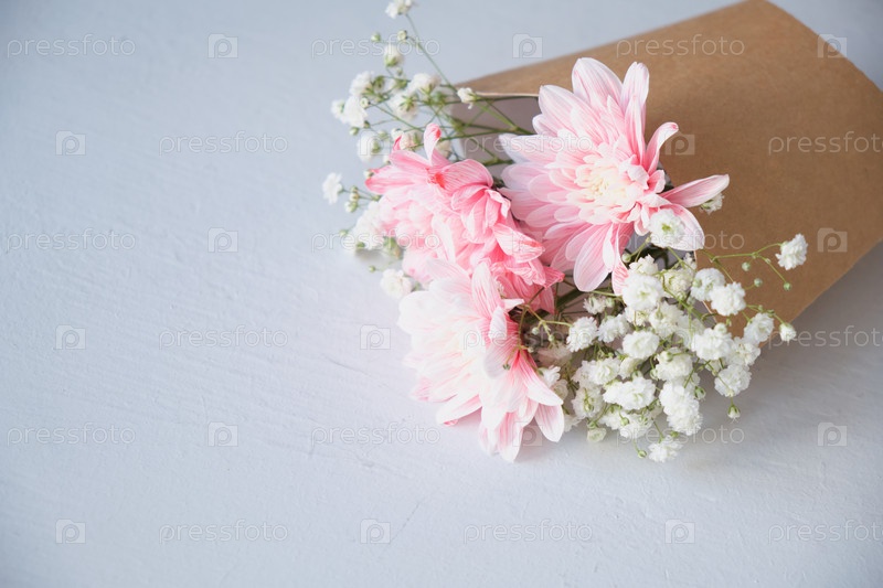 Цветы в картонной упаковке из фаст-фуда на сером фоне