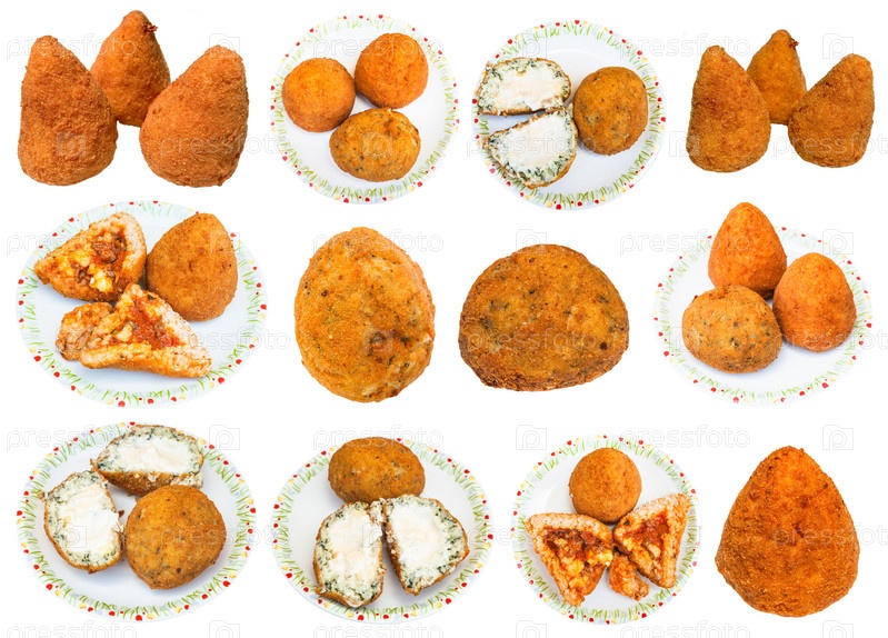 Набор различных сицилийских рисовых шариков аранчини