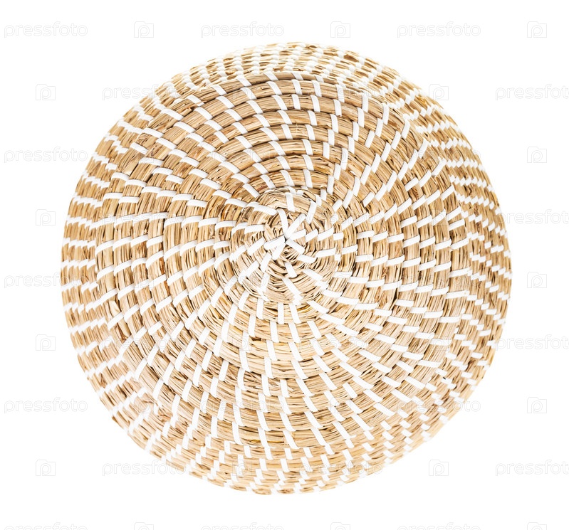 Вид сверху закрытой марокканской плетеной корзины изолирован