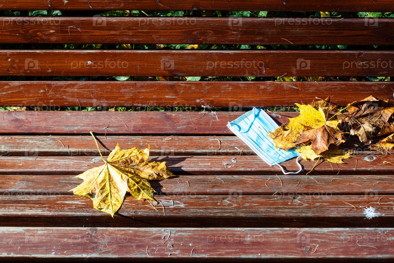 Заброшенная медицинская маска для лица и кленовые листья