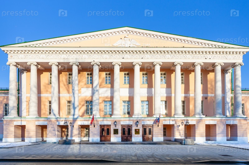 Вид спереди на дворец Московской городской думы утром