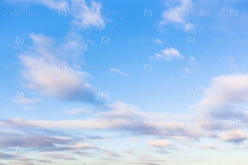 Низкие облака в голубом небе в вечерних сумерках