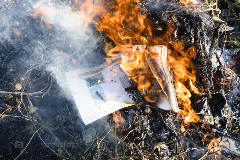 Горящий фотожурнал в огне на стеблях