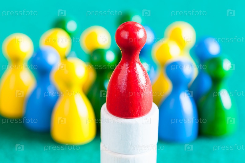 Одна красная пешка на базе над многими цветными пешками