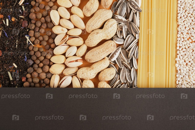 Различные сыпучие продукты из бакалеи текстуры вид сверху на пространство для копирования