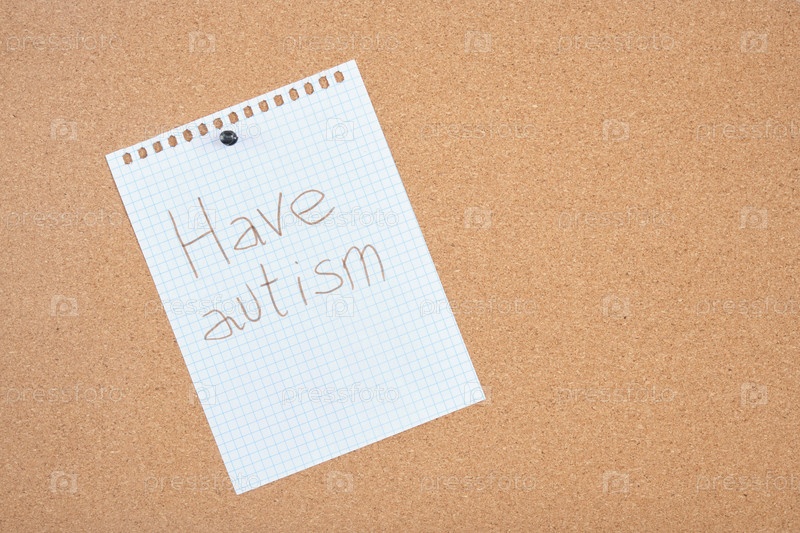 Прикрепленная наклейка на пробковой доске, наклейка с надписью аутизма, концепция напоминания