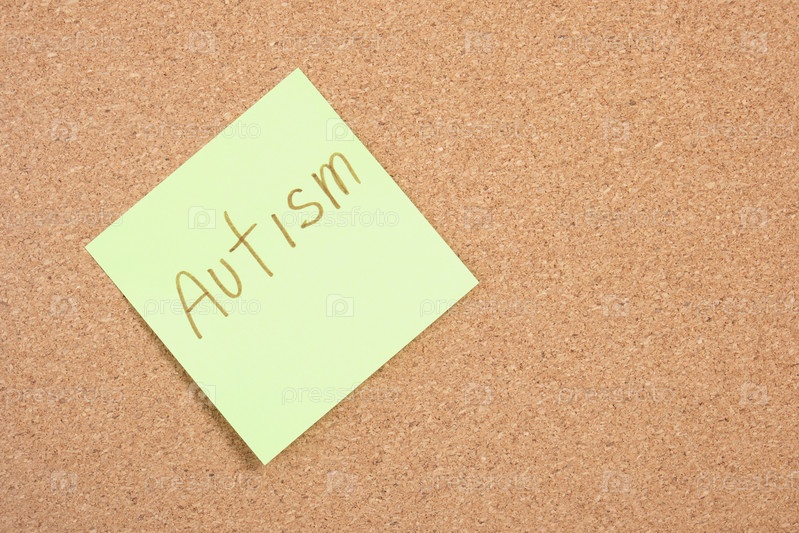 Прикрепленная наклейка на пробковой доске, наклейка с надписью аутизма, концепция напоминания