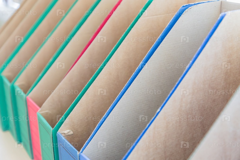 Ряд пустых папок для файлов и бумаги, офисное хранилище, бизнес-концепция